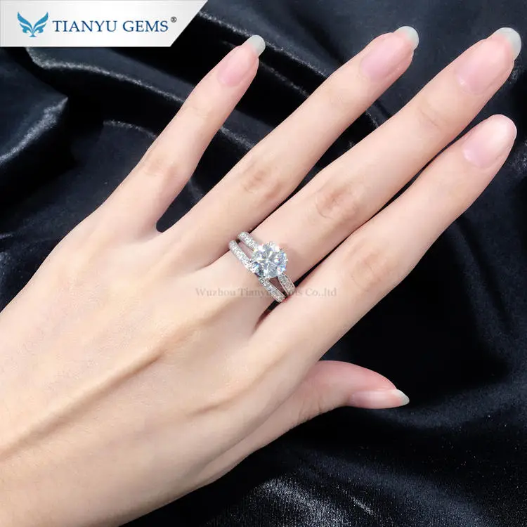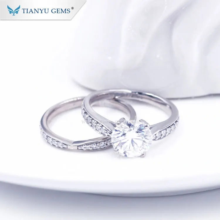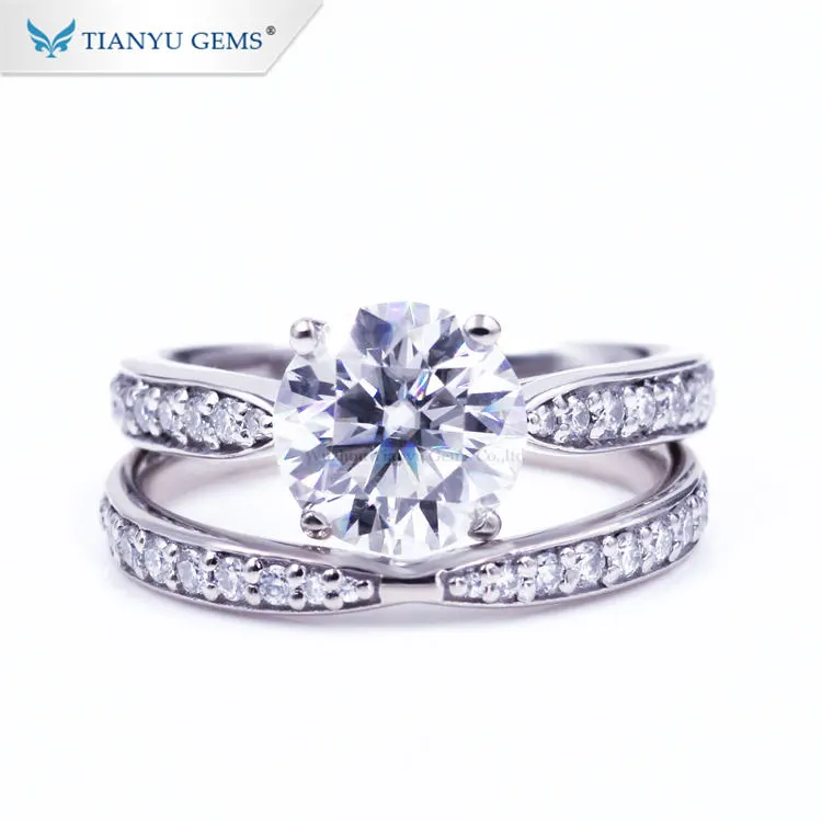 Tianyu Gems customized PT950 white gold 2ct round heart&arrow colorless moissanite ring set for ladies