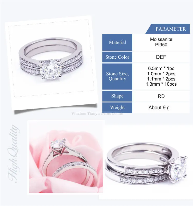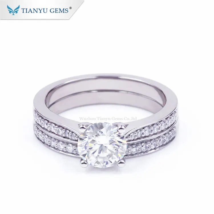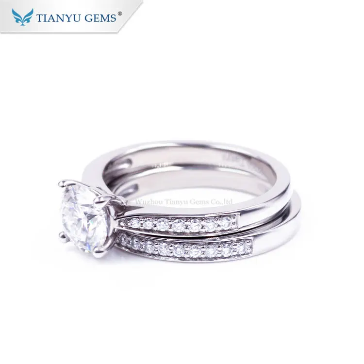 Tianyu Gems customized 18k white gold 1ct round heart&arrow colorless moissanite ring set for ladies