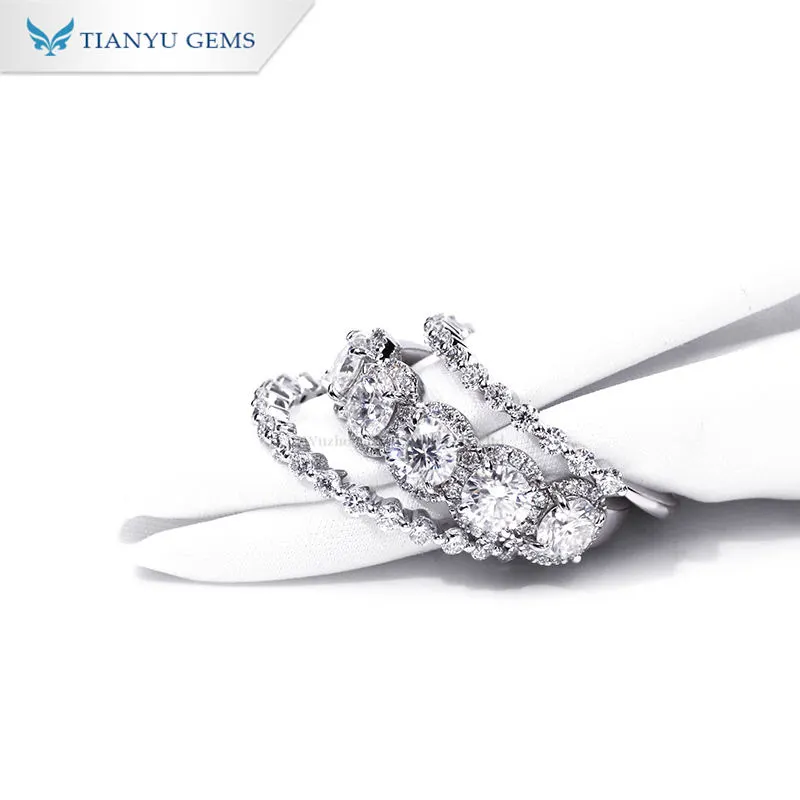Tianyu gems Round 5.0mm moissanite three pcs 14k solid white gold ring set