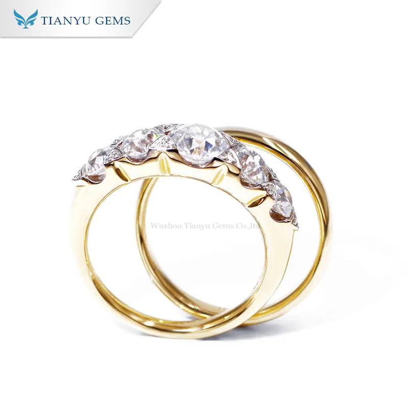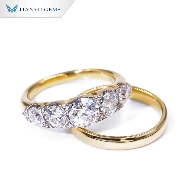 Tianyu gems round moissanite diamond def/vvs1 14k solid yellow gold ring set for fashion girls