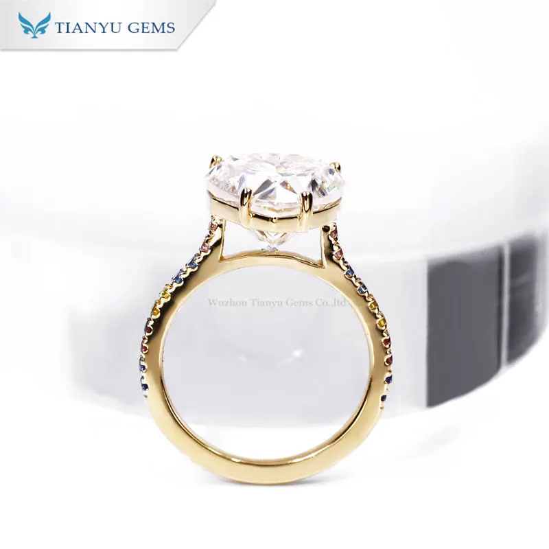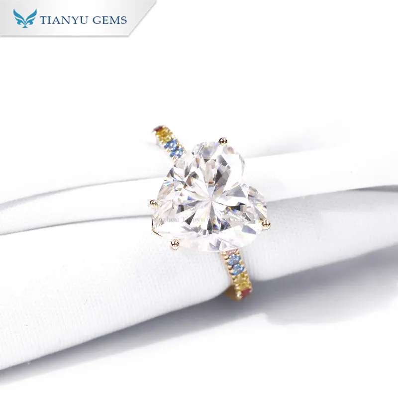 Big size 11*11mm heart brilliant cut DEF VVS white moissanite, 1.4mm melee colors gemstone , 18k yellow gold solitaire classic ring