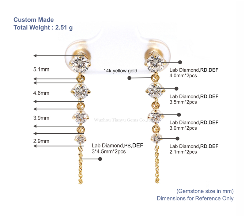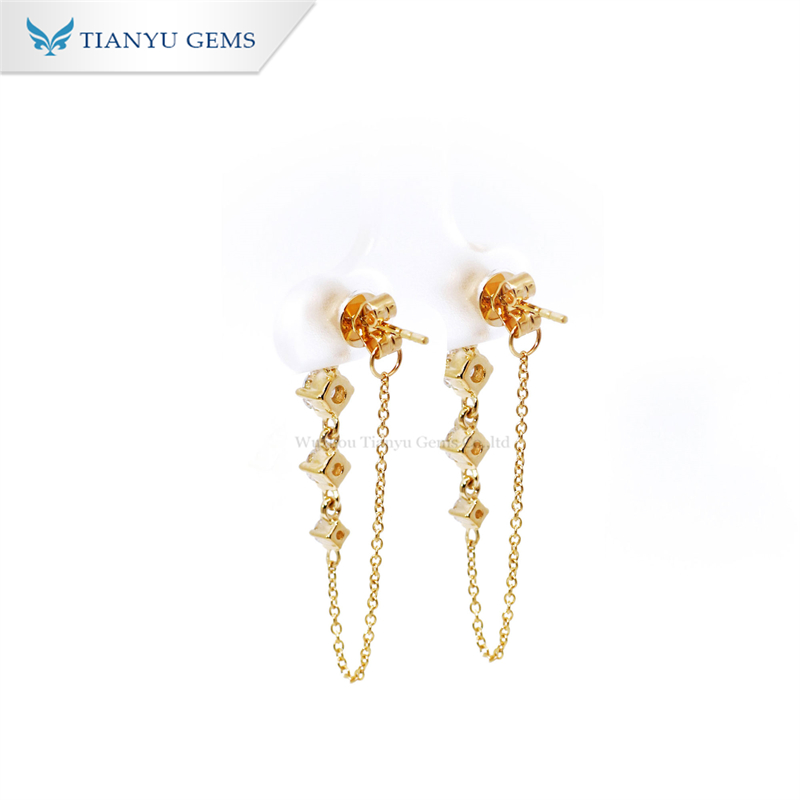 Tianyu gems jewelry round lab diamond 4.0mm 3.5mm 3.0mm 2.1mm 14k yellow gold charm earrings for women