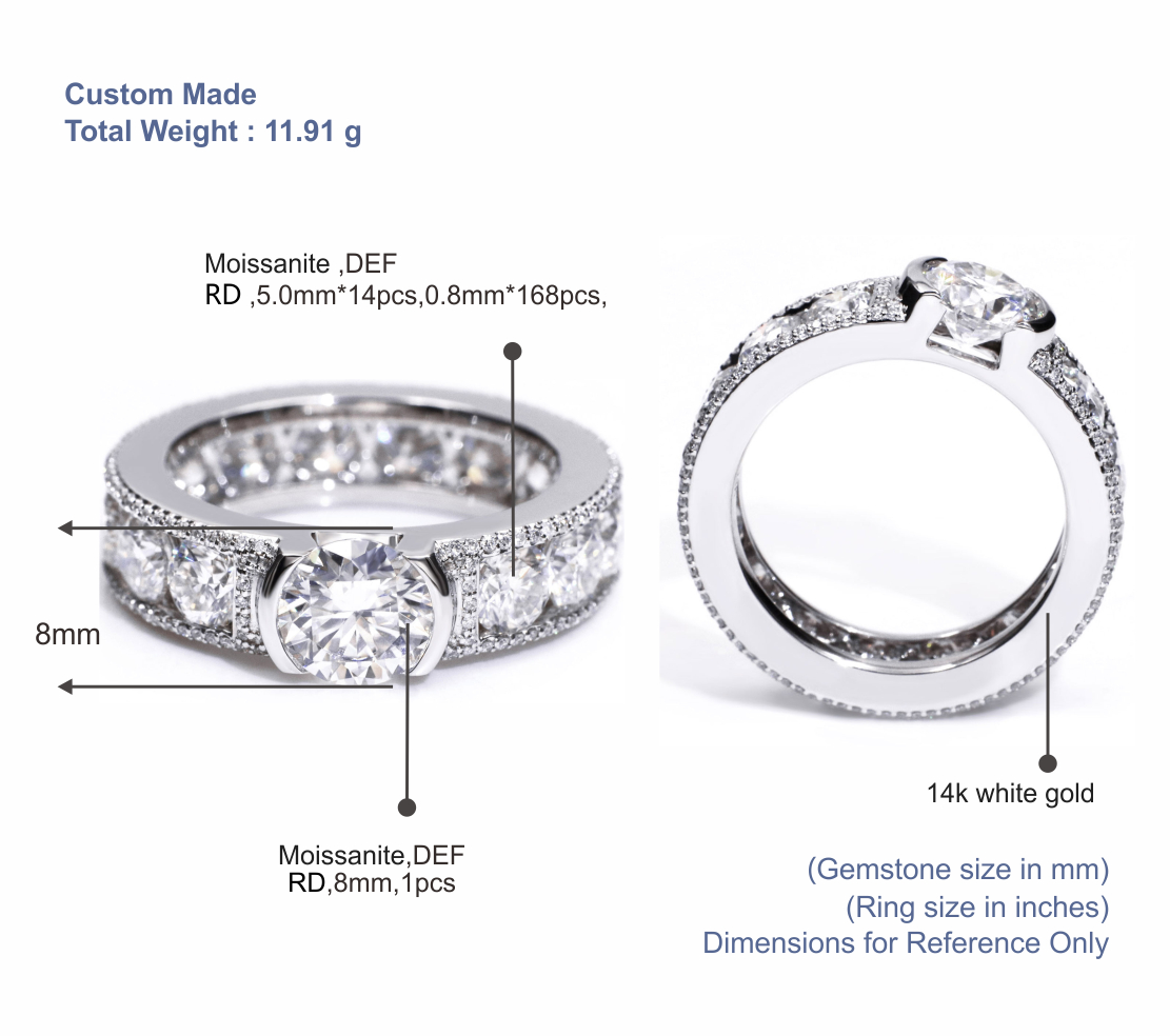 5.0mm*14pcs   0.8mm-168pcs  8mm*1pcs  White Moissanite