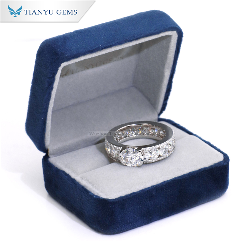 Tianyu gems jewelry round hearts and arrows cut moissanite diamond solid gold 14k men rings