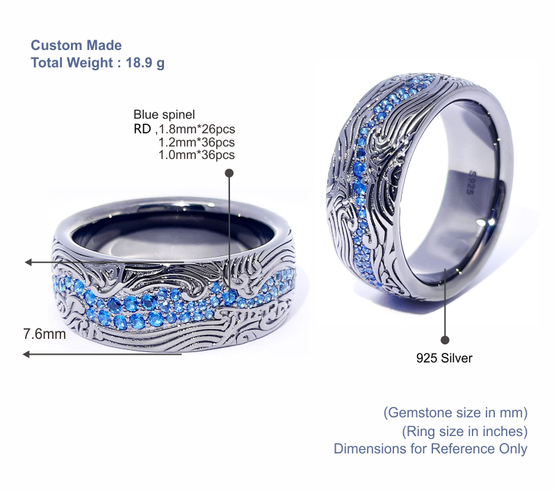 Step into sophistication and individuality with the Custom-Made S925 Blue Spinel Round Cut Men's Ring with Black Gold Plating, meticulously crafted to adorn the hands of modern gentlemen with impeccable style and unique flair. This ring goes beyond mere accessories; it's a symbol of distinction, personal expression, and refined taste. Crafted with precision and care, it features a striking blue spinel stone cut into a round shape, set in a sleek S925 sterling silver band with black gold plating, exuding understated luxury and unmatched beauty, making it the perfect choice for men who appreciate fine craftsmanship and individuality.