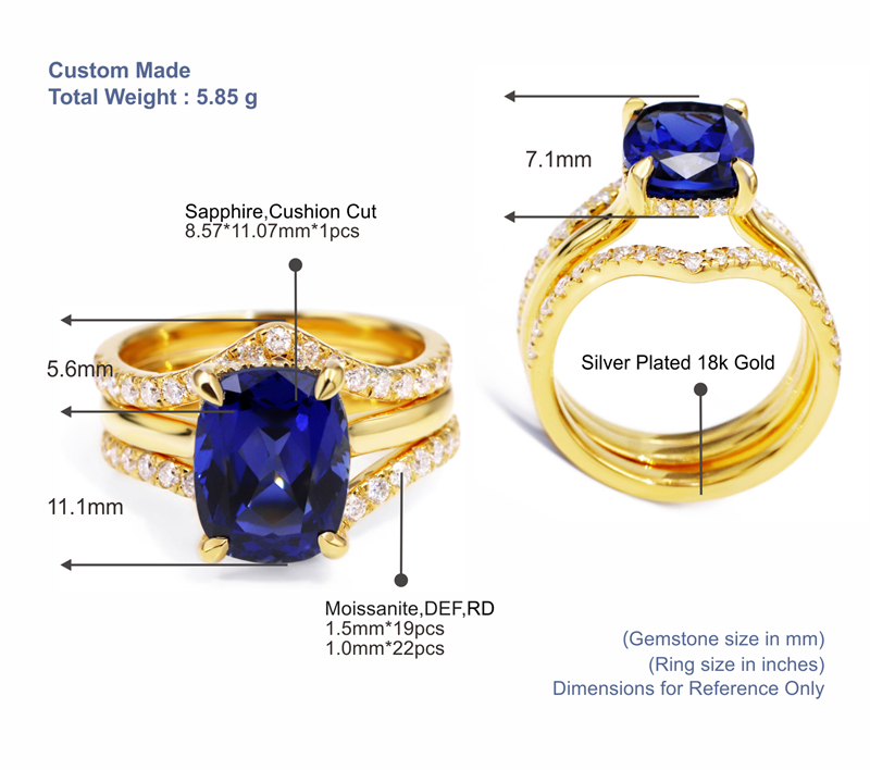 The Cushion Four-Claw Sapphire Three-Layer Ring Set is a stunning jewelry piece that seamlessly blends the classic allure of sapphires with a contemporary three-layered design. This ring set, featuring a luxurious cushion-cut sapphire held securely by a four-claw setting and complemented by intricate layers, is designed for those who appreciate both tradition and modernity in their accessories. Whether it’s chosen to mark a significant occasion or simply to add a touch of elegance to everyday wear, this exquisite ring set promises to captivate and enchant.