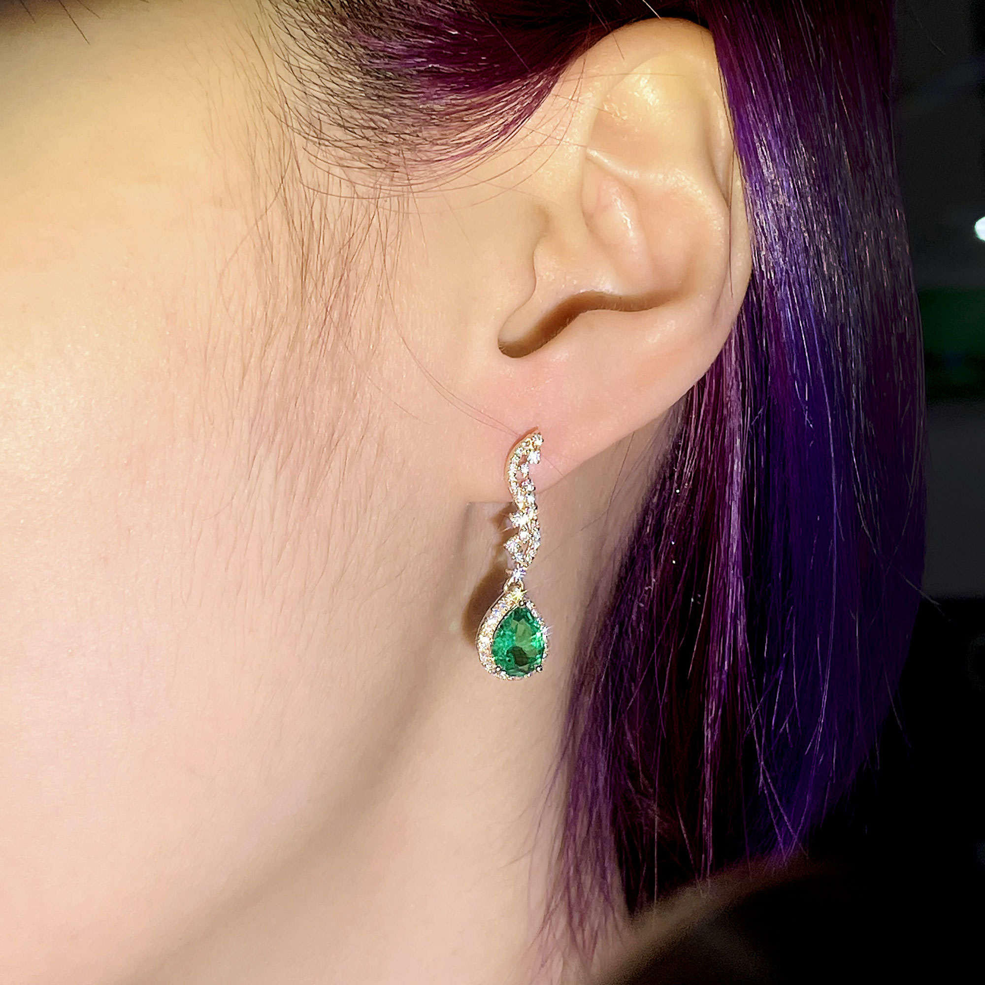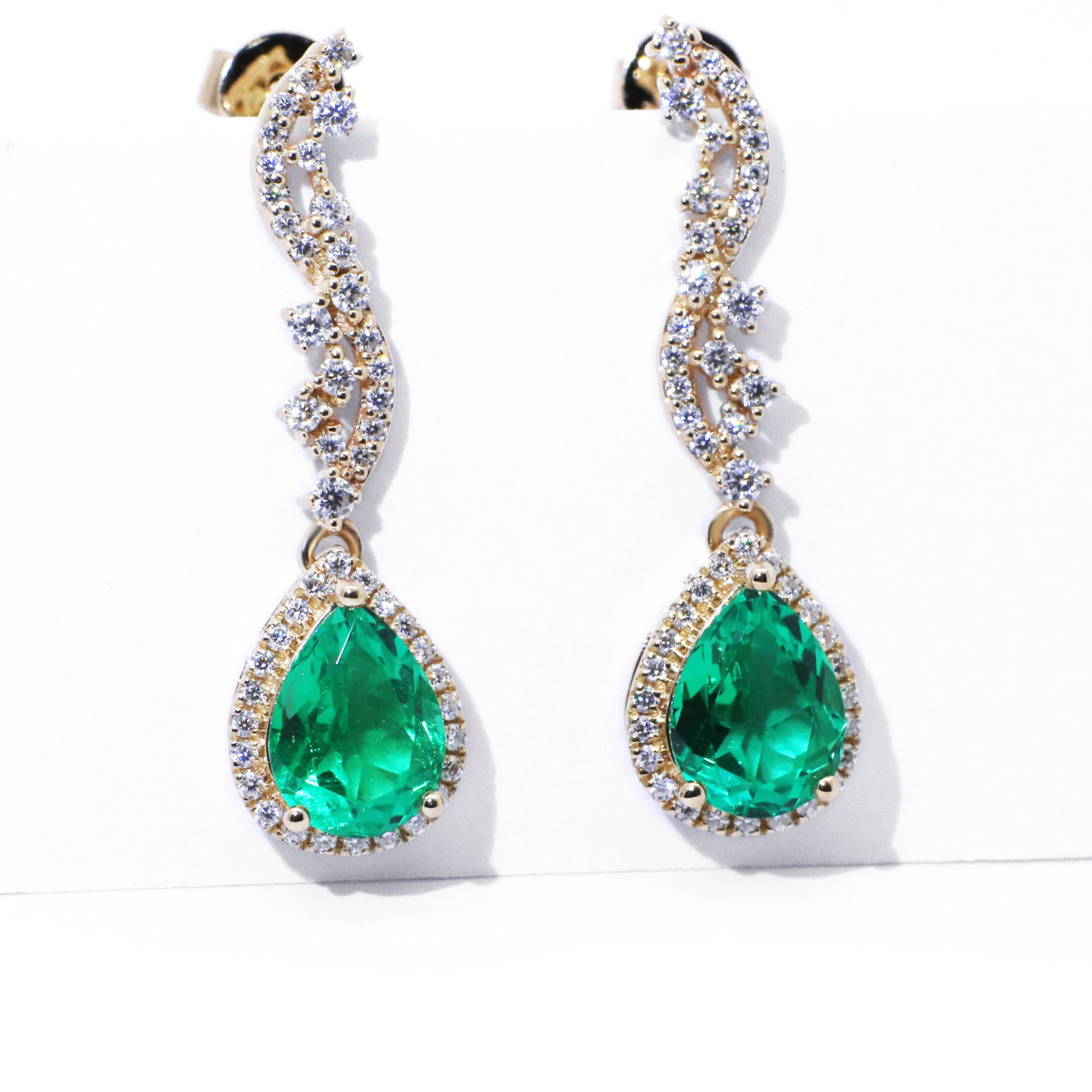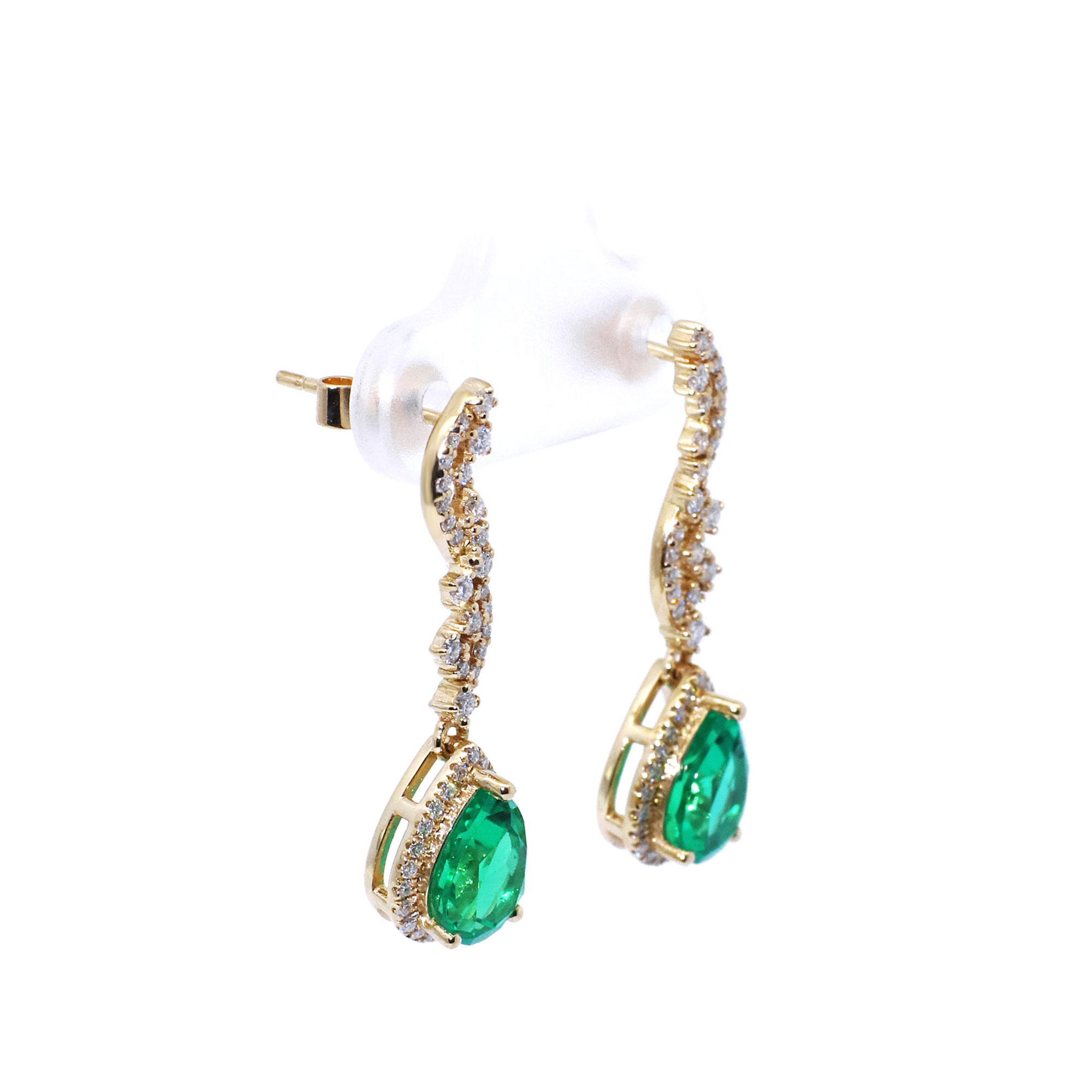 Elevate your jewelry collection with our 14K yellow gold earrings, featuring exquisite pear-cut Colombian emeralds and dazzling moissanite stones. These earrings are designed for women who appreciate the perfect blend of classic elegance and contemporary style. As leading wholesaler suppliers, we offer fine jewelry pieces that capture the essence of sophistication and timeless beauty.