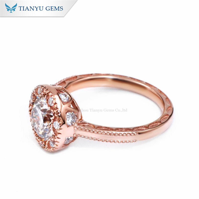14k rose gold 8.0mm round hearts and arrows cut moissante d vvs1 engagement ring for women