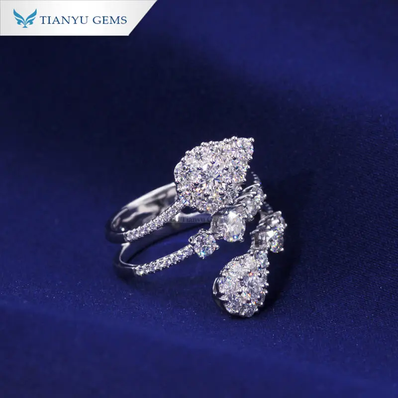 Tianyu Gems Lovely Circle Twining Colorless Moissanite Diamond 10K White Gold Engagement Ring