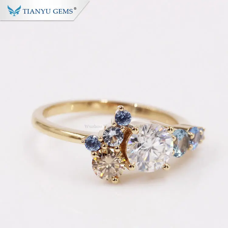 Tianyu colored moissanite diamond 18k solid gold jewelry ring custom