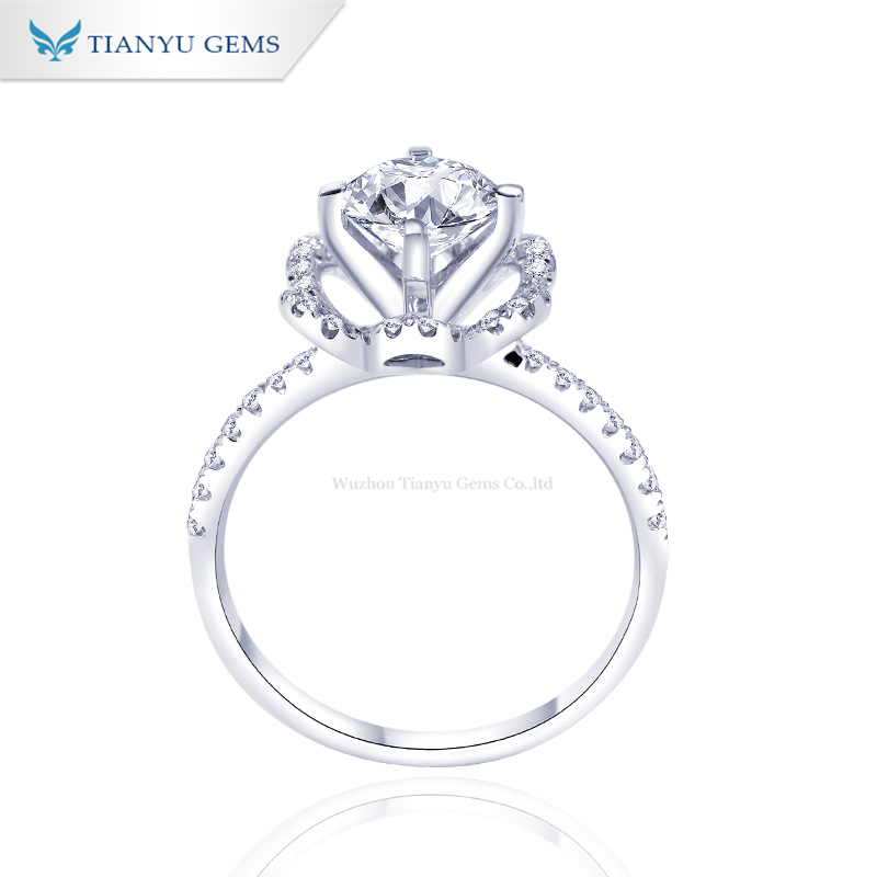 Tianyu Gems Simple Style Six Petals Flower Moissanite Diamond Wedding Engagement Ring