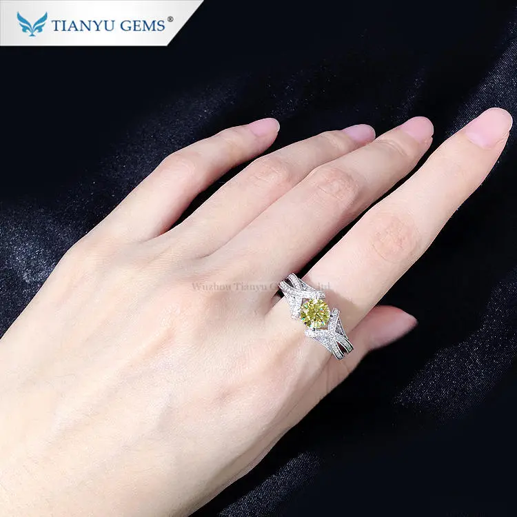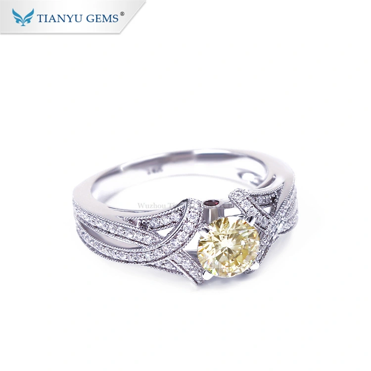 Tianyu round yellow moissanite diamond 18k white solid gold jewelry rings